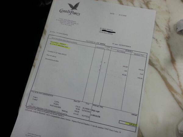 ancien secrétaire général de l'UMP, détaille la facture de Center Parcs qu'il